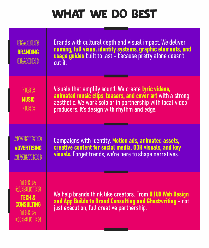 Creative Studio for everything that requires a special touch. The sauce that goeswell with your business. Your product needs to be presented to the world,so let us do it in the best and most beautiful way. Beyond being beautiful,it needs a purpose. What makes us really happyis finding the essence of the productand conveying it visually and completely. Ready to give your product or businessthat special touch it deserves?